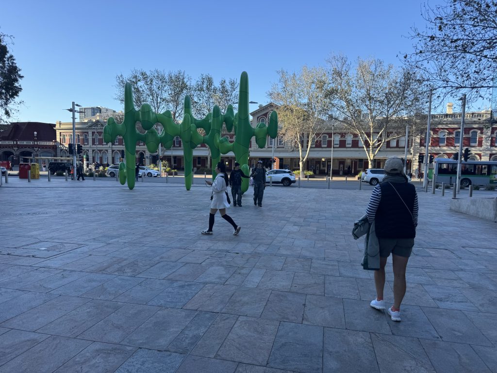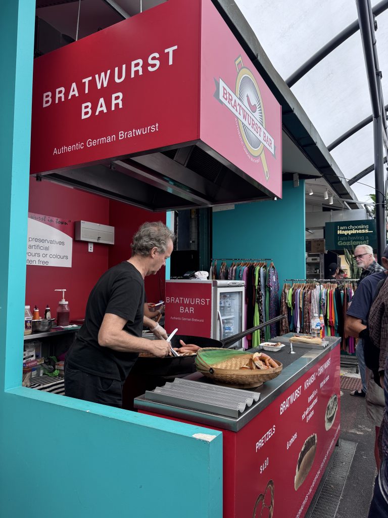 Fremantle wurde von britischen Siedlern gegründet. Wir schlendern durch den Markt – das Angebot ist riesig: Essen, Süßigkeiten, Obst, Gemüse, Geschenkartikel, Kleidung. Am deutschen Stand gönnen wir uns eine Bratwurst – die Bedienung spricht allerdings kein Wort Deutsch.