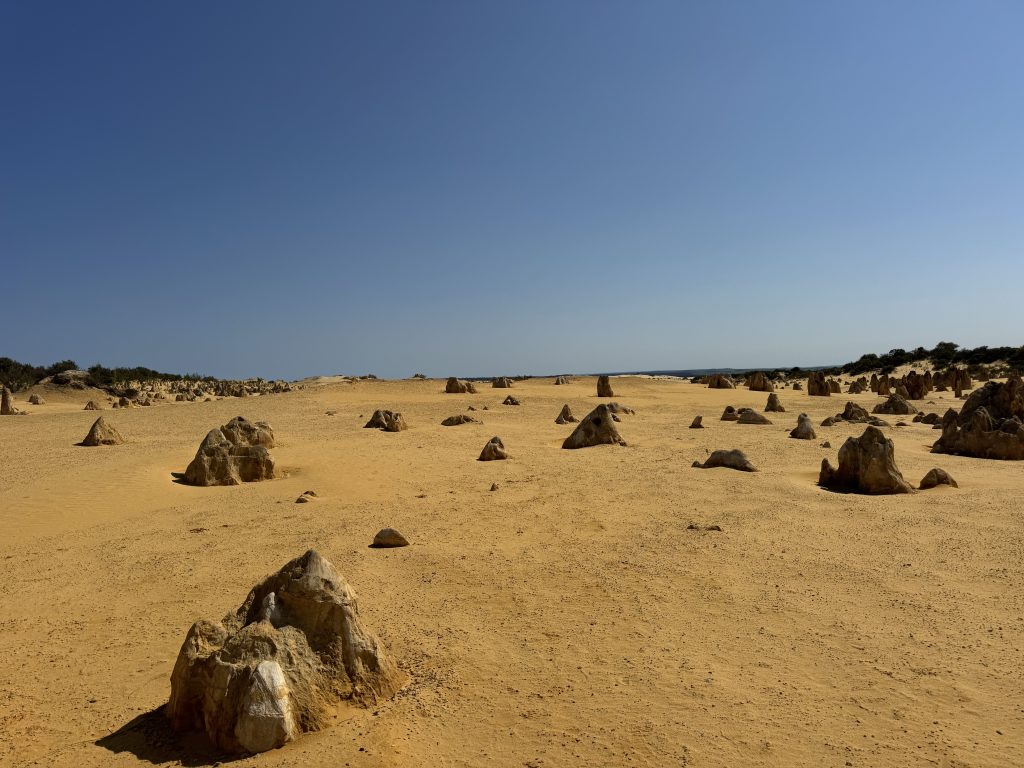 Die bis zu 4 m hohen, ockerfarbenen Kalksteintürme wurden in 15.000 bis 80.000 Jahren durch Wind und Wasser geformt. Wanderdünen, die sich mit etwa 2,5 m pro Jahr verschieben, legten sie frei.